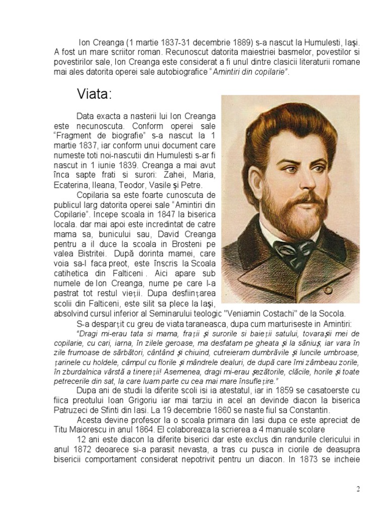 Referat Viata Si Opera Lui Ion Creanga 297061 Graduo