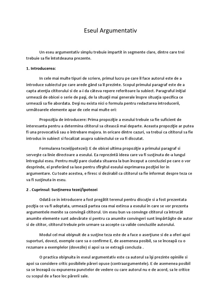 Doc Structura Unui Eseu De Tip Argumentativ Larisa Vizitiu Academia Edu