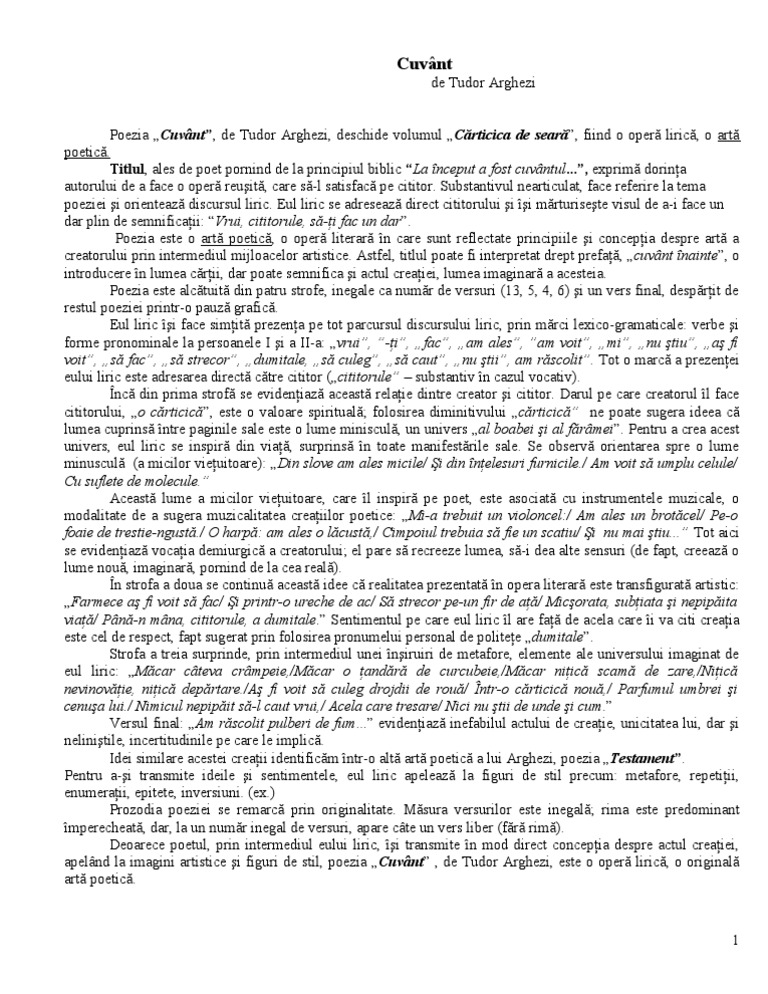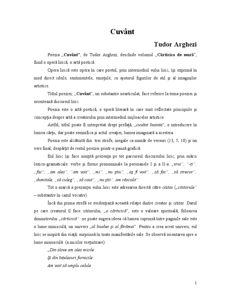 Comentariu Cuvant De Tudor Arghezi Pdf