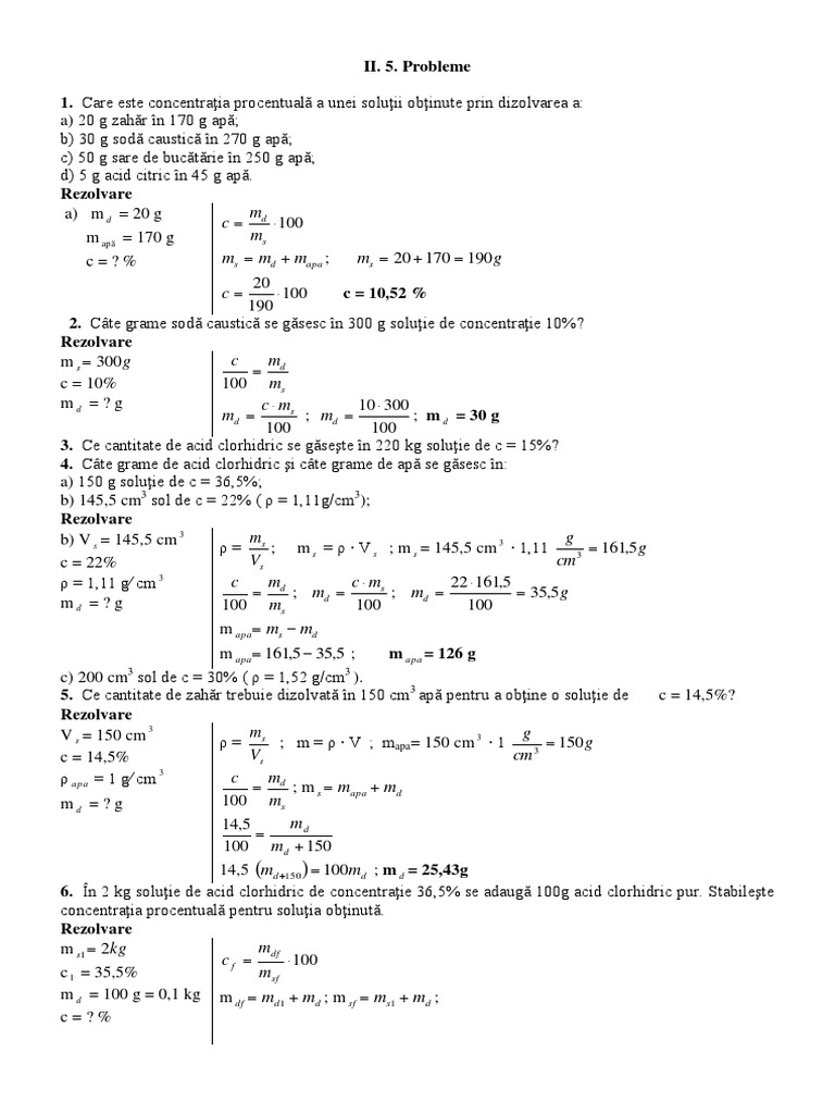 Concentraţia Soluţiilor Modele De Probleme Chimie Anorganica Meditatii
