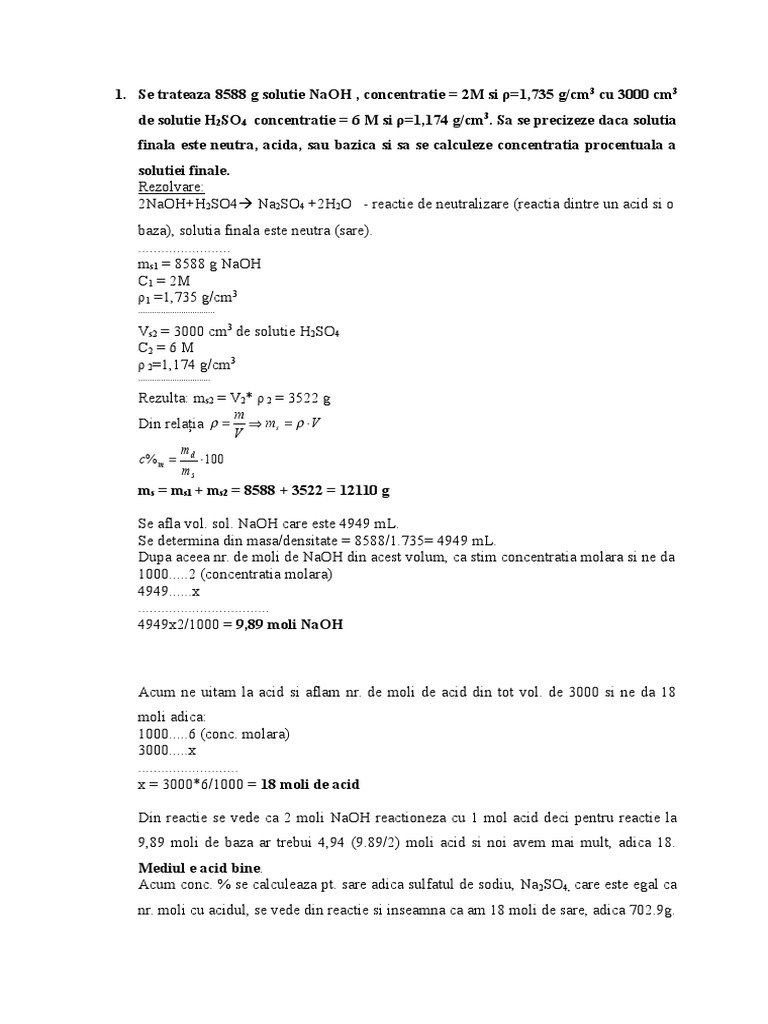 Concentratia Molara Probleme Rezolvate