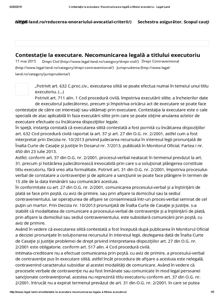 Cazurile In Care Se Poate Formula Contestaţia La Executare Ncpp L Nr 143 2000 Universul Juridic