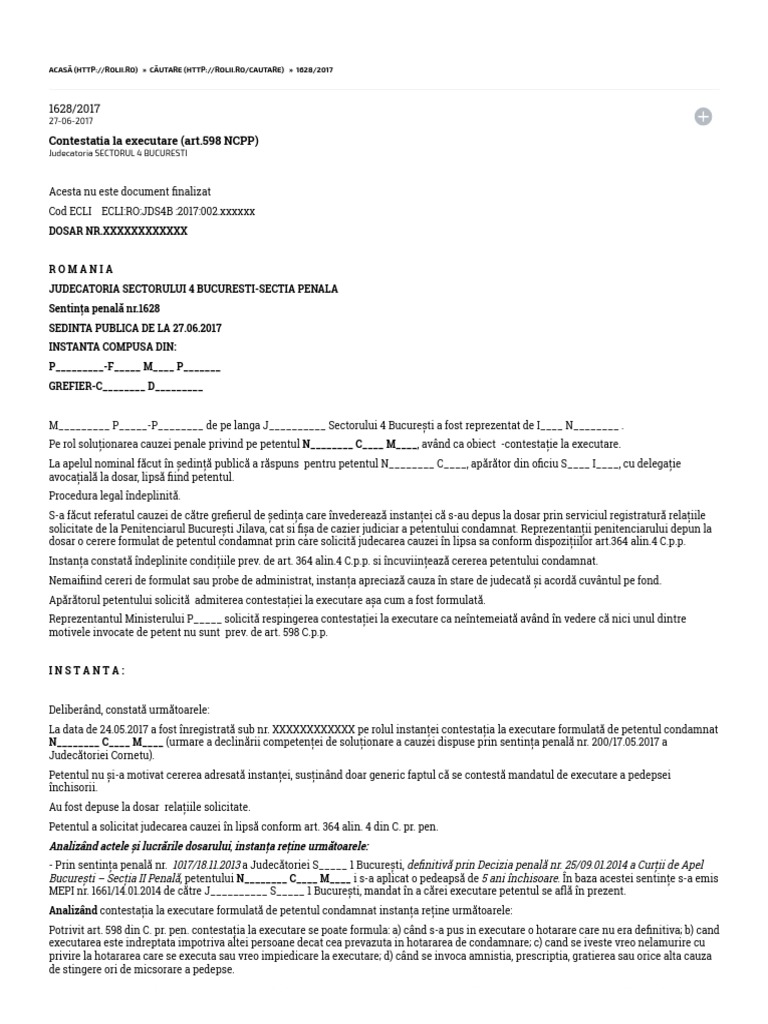 Cazurile In Care Se Poate Face Contestaţia Impotriva Executării Hotărarii Penale Admiterea Contestației La Executare Ncpp Universul Juridic
