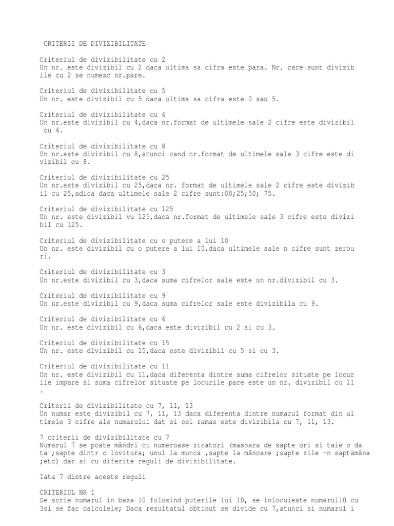 Referat Criterii De Divizibilitate 282185 Graduo
