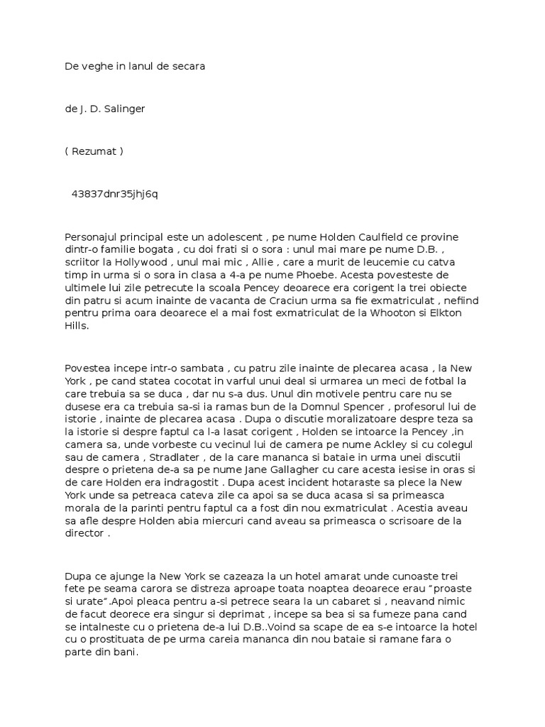 Rezumat De Veghe In Lanul De Secara 334058 Graduo