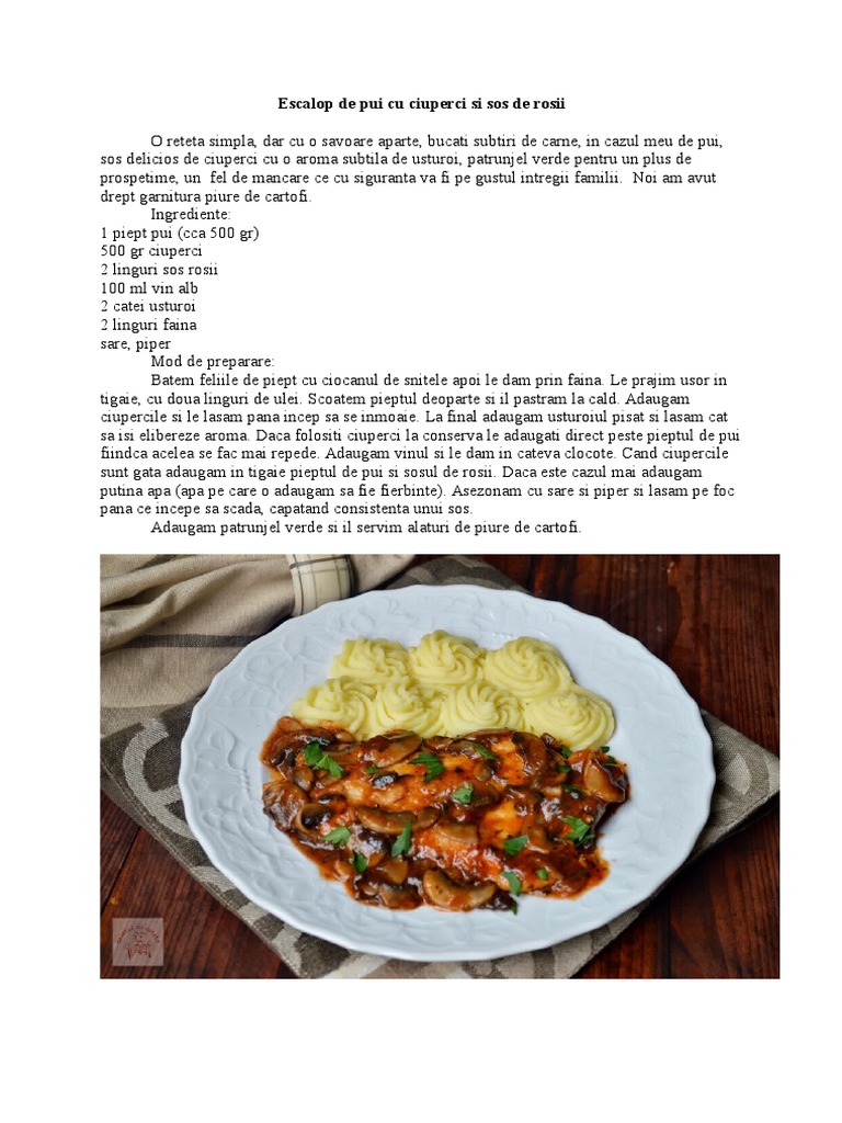 Escalop De Pui Cu Ciuperci Caietul Cu Retete