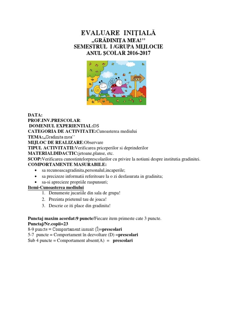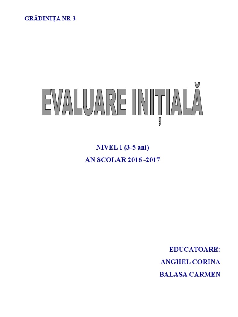 Doc Evaluare Initiala Nivel I 3 5 Ani Grupa Mijlocie An Scolar 2016 2017 Testare Iniţială Bogdan Dorobantu Academia Edu