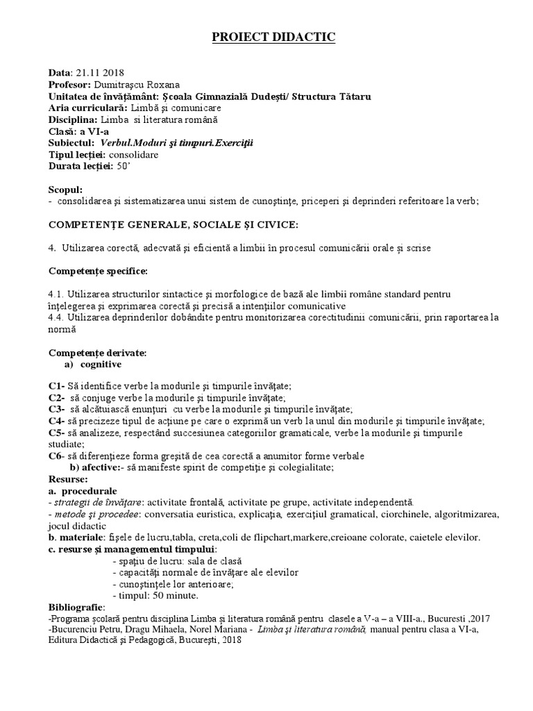 Verbul Moduri Timpuri Proiect Pt Inspectie Docx