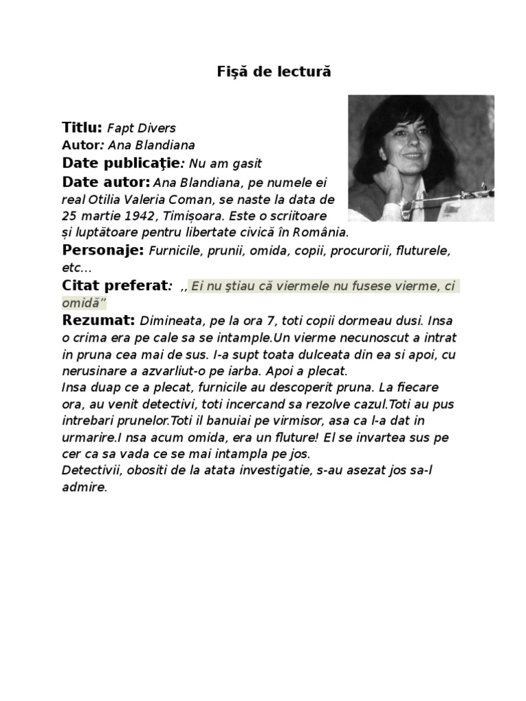 Fisa De Lectura Fapt Divers