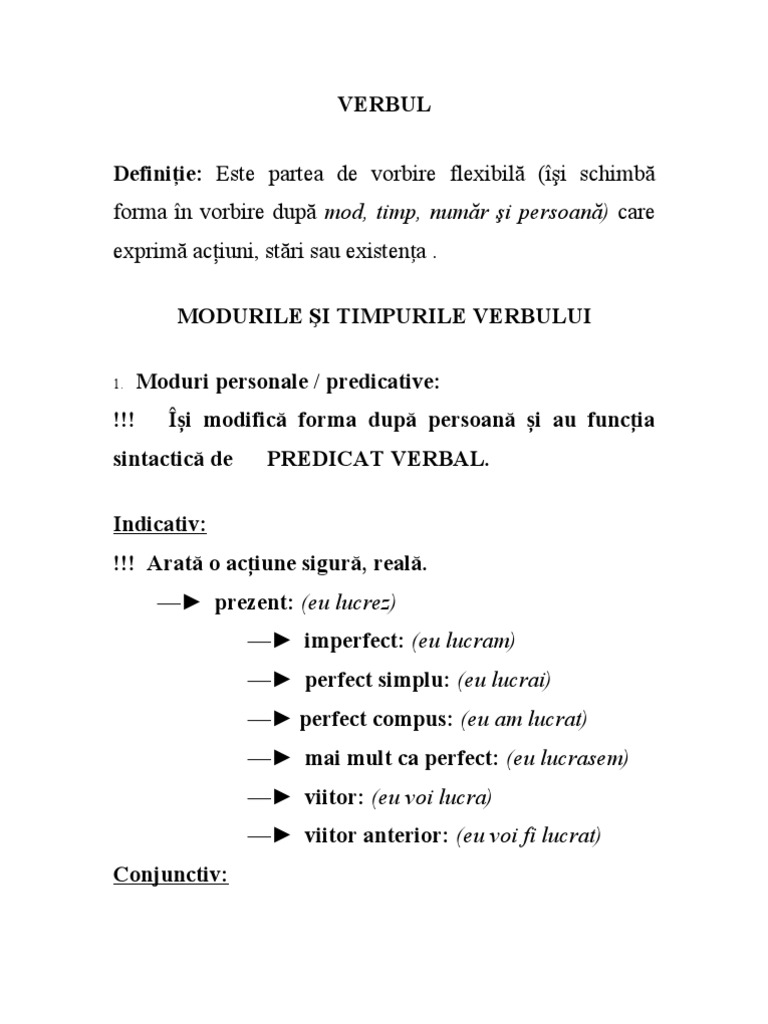Doc Verbul Clasa 5 Moduri Si Timpuri Mărioara Moti Academia Edu
