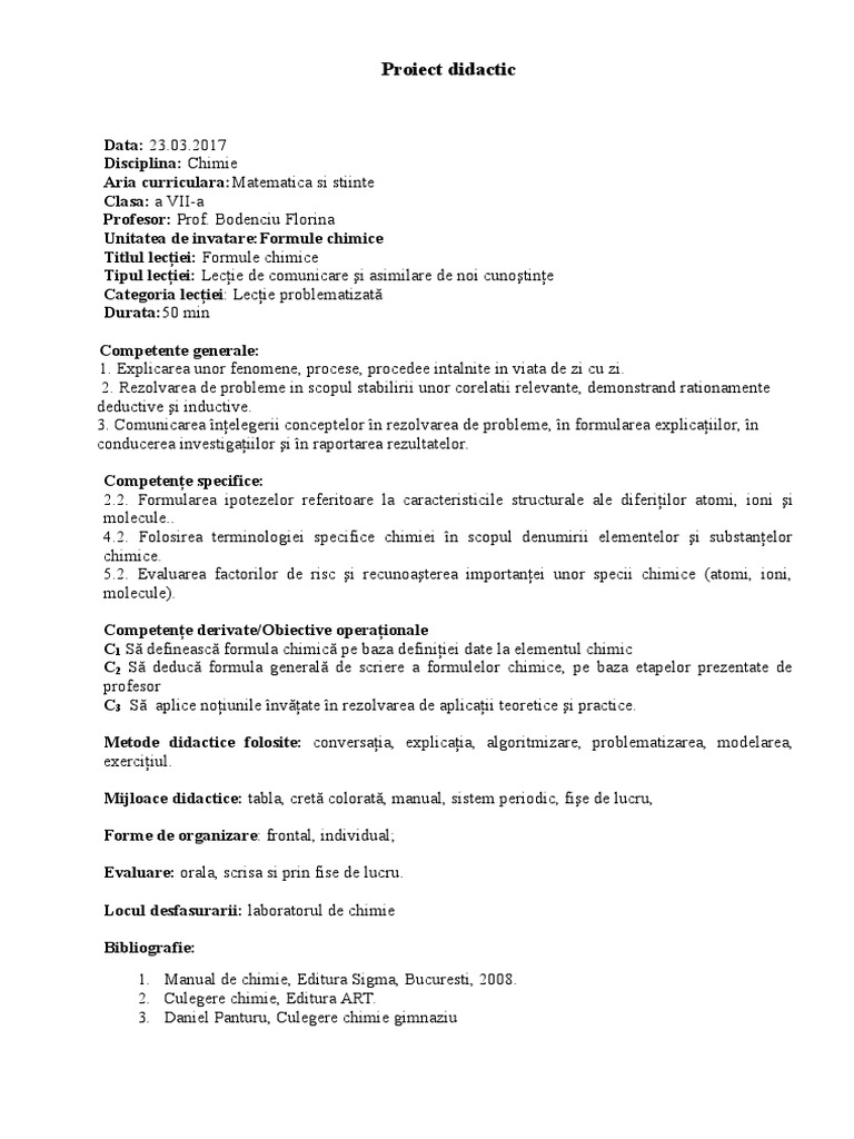 Calcule Pe Baza Formulelor Chimice Clasa A Vii A