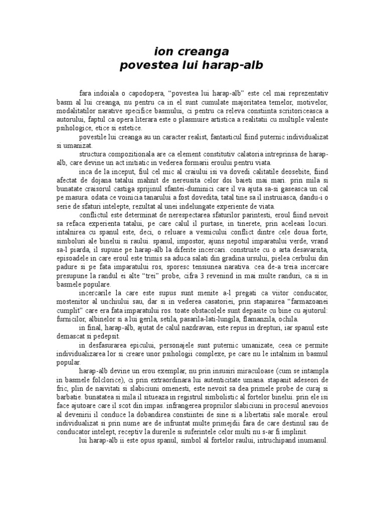 Povestea Lui Harap Alb De Ion Creangă Rezumat Mihai Dorian Academia Edu