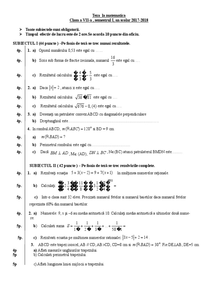 Fisa Recapitulativa Pentru Teza Semestrul I Clasa A Vii A Dana Bumbea