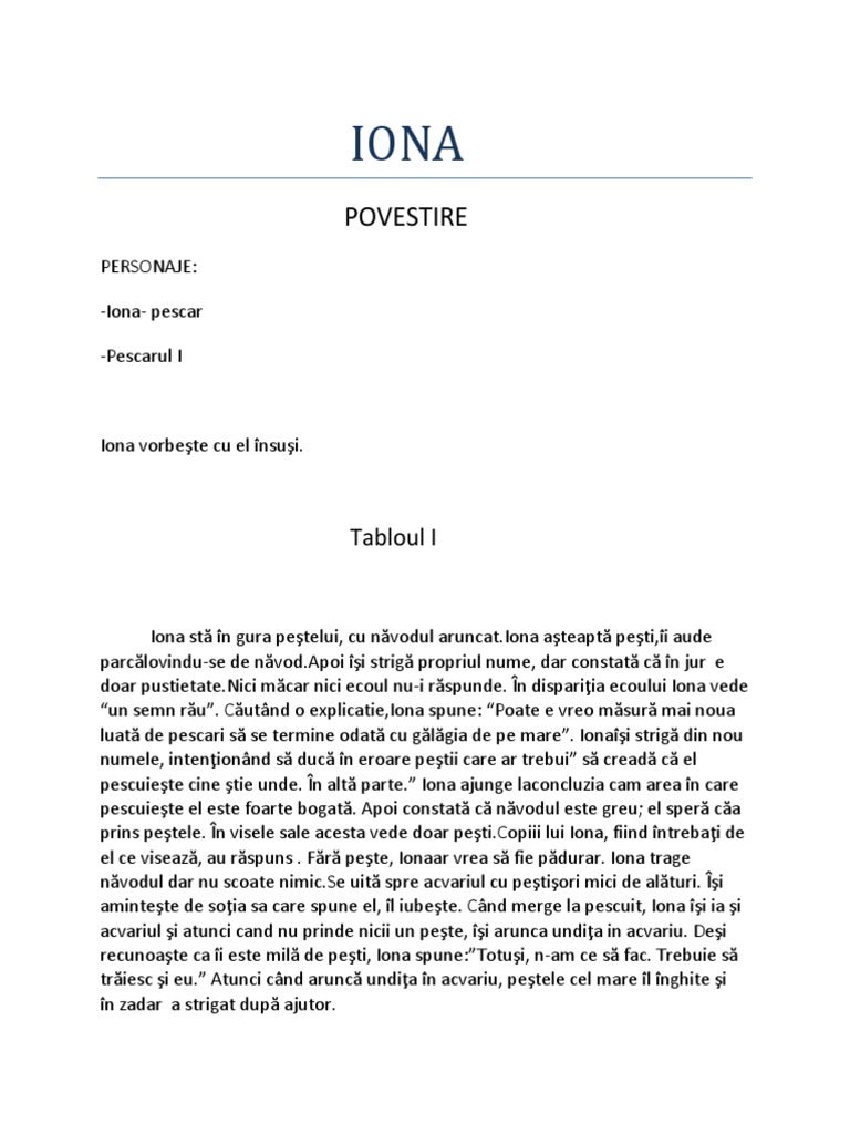 Rezumat Pe Capitole Iona De Marin Sorescu Rezumate Cărți Citeste Cărți Online Pdf Caracterizări Referate Si Comentarii Cărți