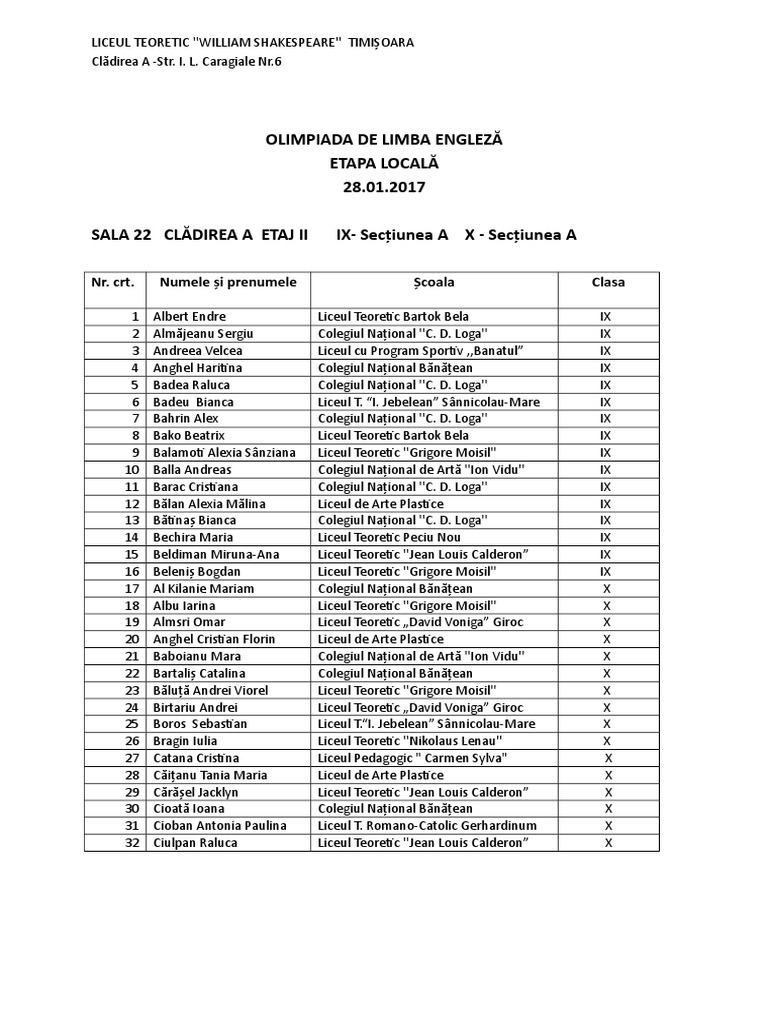 Sali Olimpiada De Limba Engleza Clasele Ix Xii Locala 2017