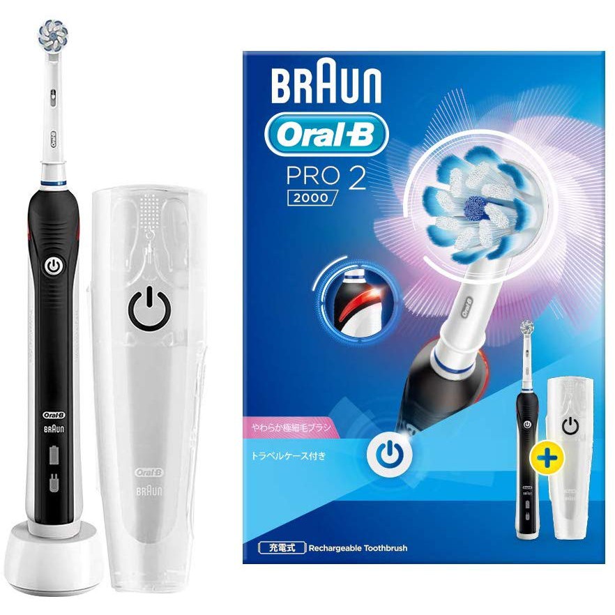 Oral B Pro 2 2000 Electric Toothbrush With Free Travel Case Black