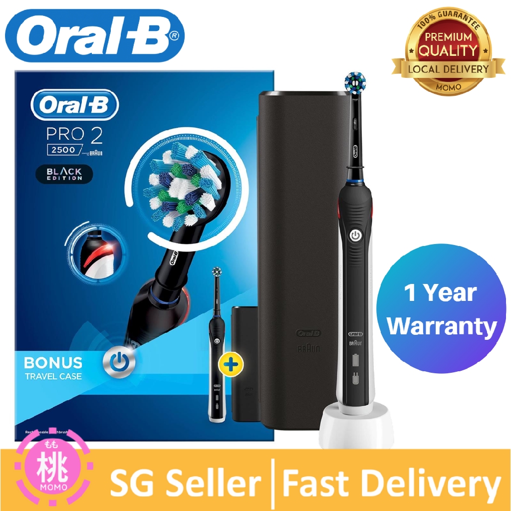 Oral B Pro 2 2500 Crossaction Electric Toothbrush Rechargeable Powered By Braun 1 Black Handle 2 Modes Including Gum Care 1 Toothbrush Head Travel Case 2 Pin Uk Plug Colour May Vary Amazon Sg Health