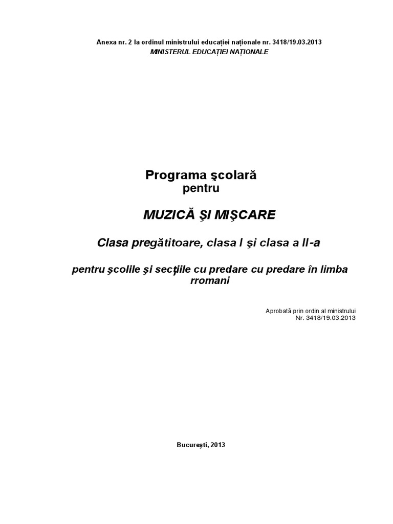Programa Muzica Si Miscare Clasa 1