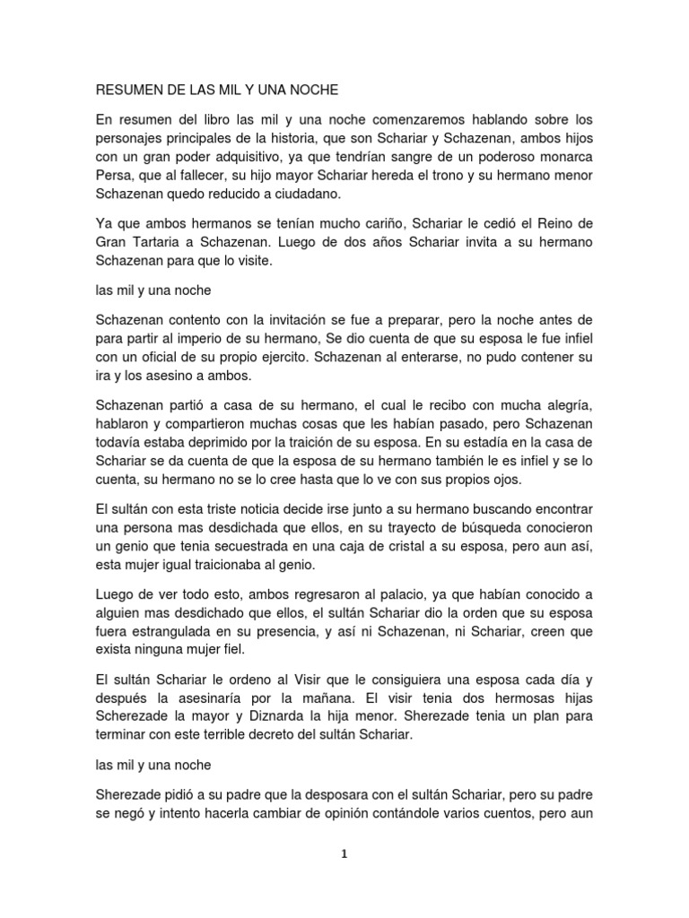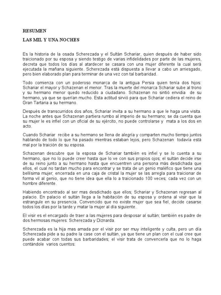 Resumen Las Mil Y Una Noches Mil Y Una Noches