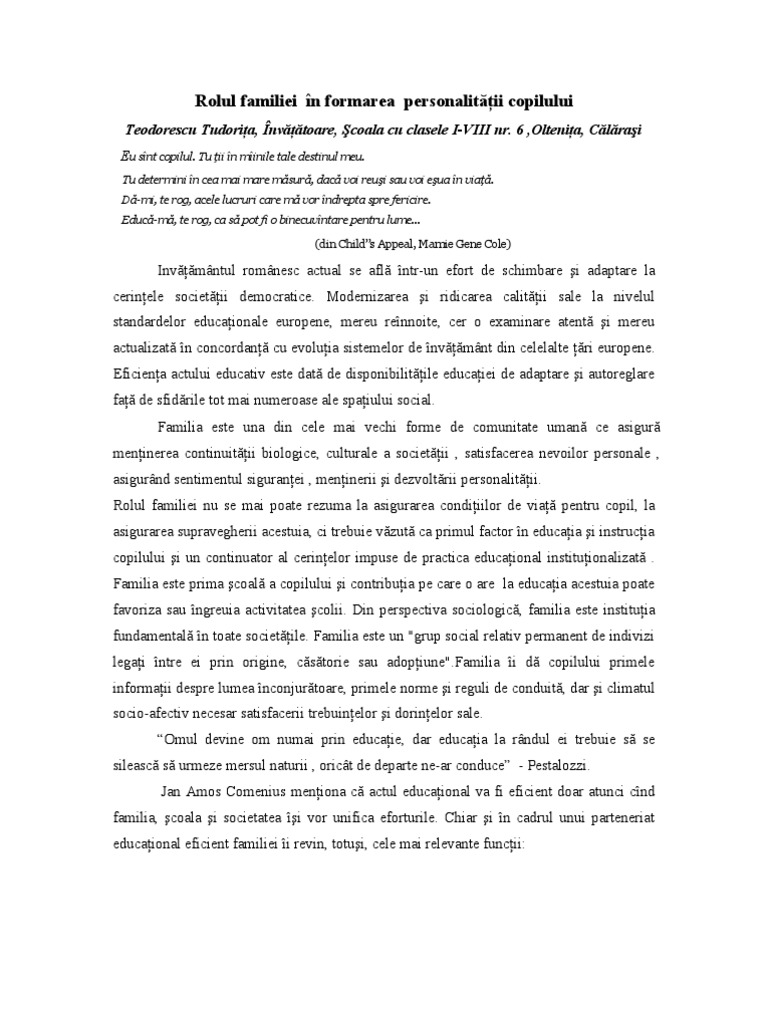 Proiect Rolul Familiei In Educarea Copiilor Sociologie 229437