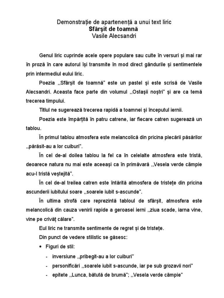 Referat Sfarsit De Toamna De Vasile Alecsandri 334566 Graduo