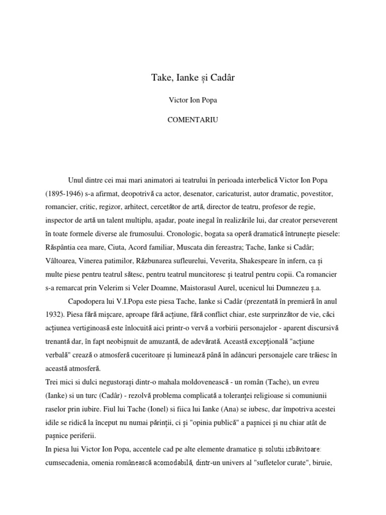 Piesa De Teatru Take Ianke Si Cadar Cosmin M3 S Blog