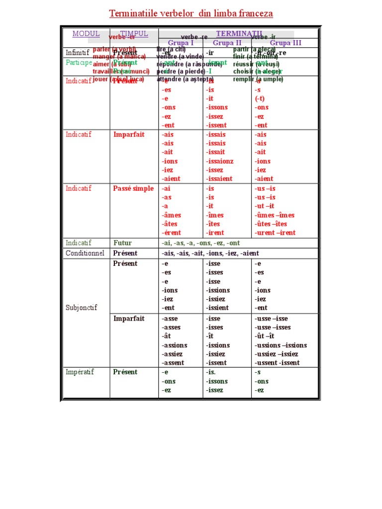 Terminatiile Verbelor Din Limba Franceza Linguistique Syntaxe