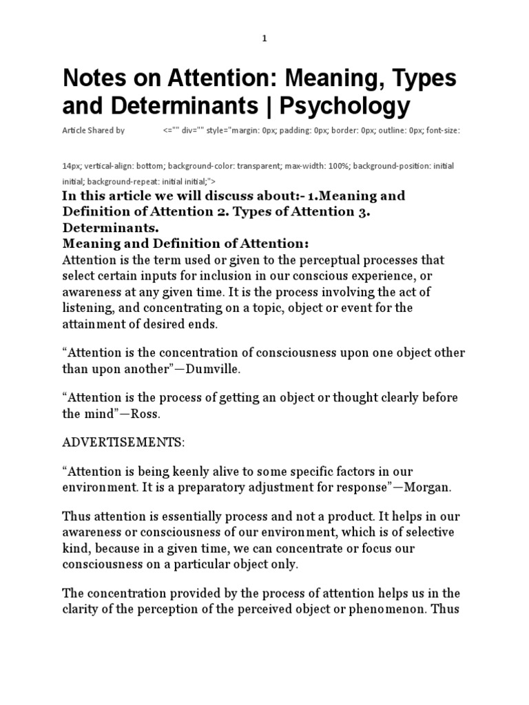 Attention Process Nature Determinene Attention Perception