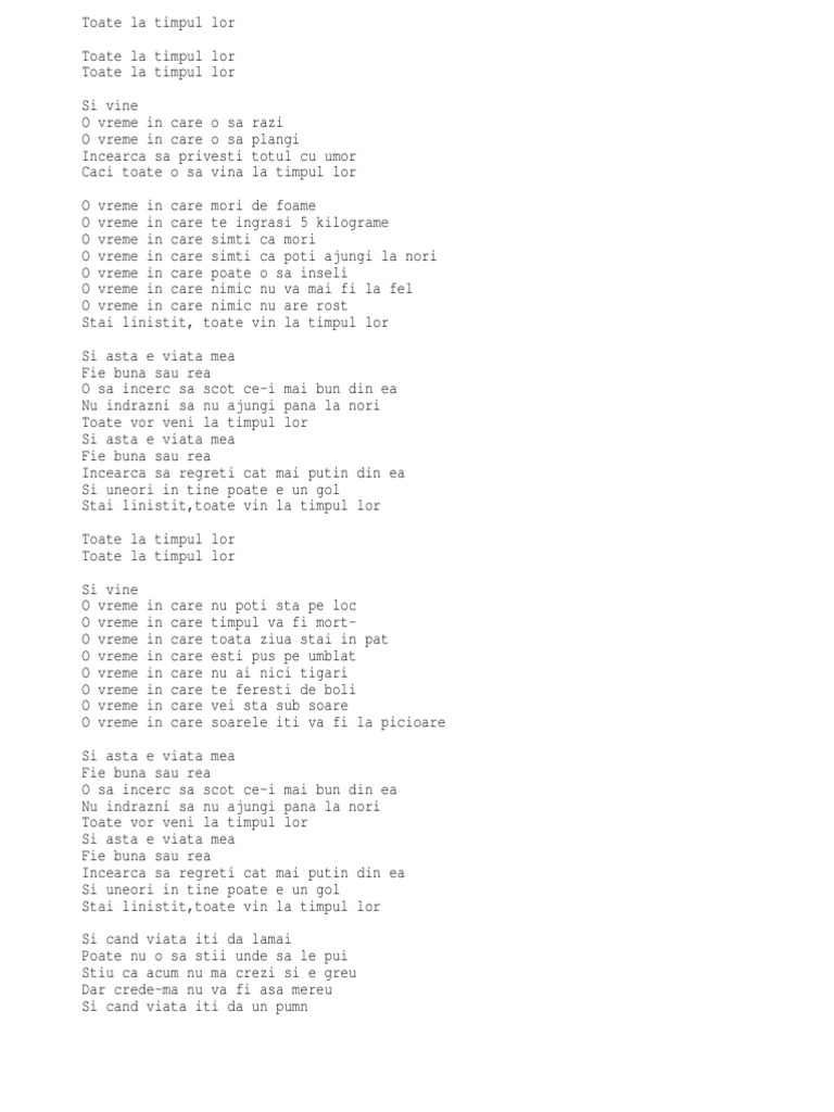 Toate Vin La Timpul Lor Youtube