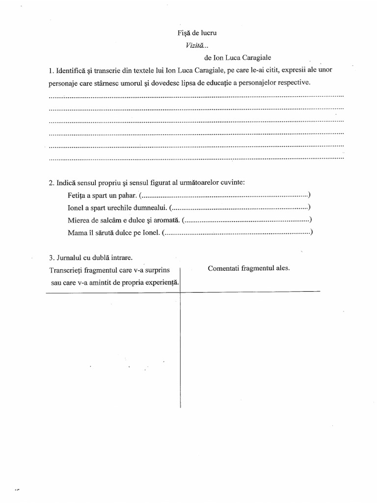 Vizita De I L Caragiale Machete Didactice
