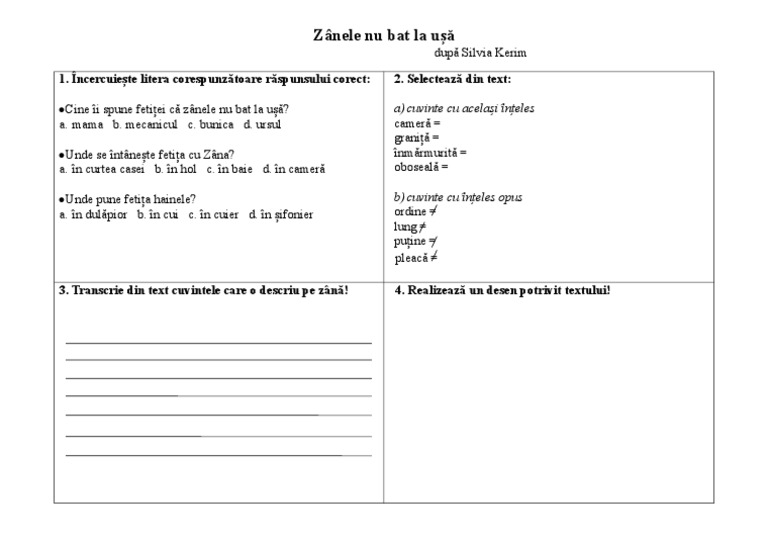 fise de lucru clasa 1 comunicare in limba romana pdf